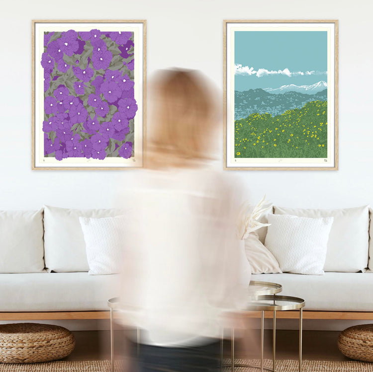 Screen printing is a very hands-on process with an end product that's vibrant, durable and has the look and feel of a painting. Printed in house in LA, in limited edition runs.